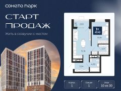 Однокомнатная квартира с предчистовой отделкой в ЖК "Соната Парк" на 10 этаже. Общая площадь: 42.11 кв.м., жилая: 13.19 кв.м., площадь просторной кухни-столовой: 15.19 кв.м. Все окна выходят на одну сторону. В квартире одна лоджия, один совмещенный санузел. Высота потолков 2.72 м.