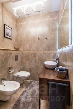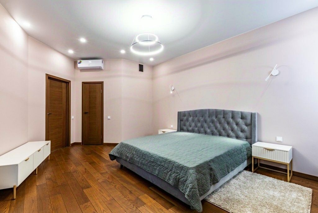 Отделка: на полу уложена итальянская термостабилизированная древесина. Подоконники из натурального гранита. Вся мебель из массива дуба. Межкомнатные двери также из массива. Керамическая плитка Vеrsасе в ванной комнате и санузле. Там где уложен керамогранит смонтированы теплые полы. В каждой комнате установлены кондиционеры Daikin. Заменена вся электрика. Натяжные потолки высотой 3 метра.