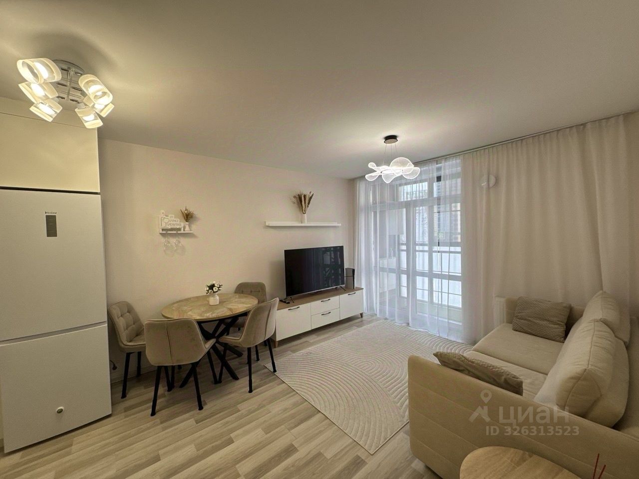 Хорошая отделка: на полу светлый ламинат высокого класса, на стенах обои под покраску.