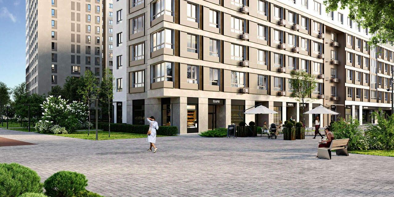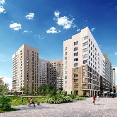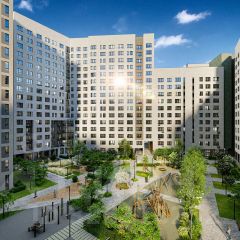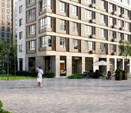 Двор закрытый с детскими площадками для всех возрастов и спортивными сооружениями. Район очень зелёный. На первых этажах коммерческие помещения.
