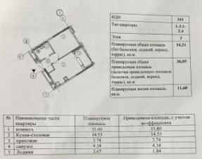 Удачная планировка: просторная кухня-гостиная площадью 14,5 м2 с выходом на лоджию, жилая комната площадью 11,6 м2, совмещенный санузел и вместительный коридор с нишой для хранения !
