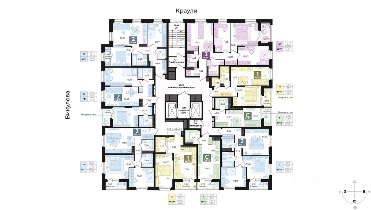 Большинство планировок имеют две и три спальни, просторные кухни-гостиные и два санузла. Места хватит даже большим семьям.