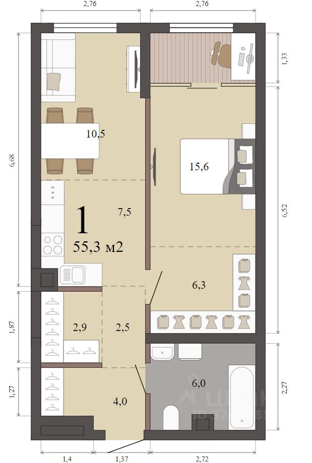 Продаётся 1-комнатная квартира в строящемся доме (Дом 2 этап 3), срок сдачи: I-кв. 2027, общей площадью 55.3 кв.м., на 2 этаже. "Парк Победы" состоит из трёх многосекционных домов переменной этажности, подземного паркинга и коммерческих помещений. Секции домов образуют закрытые дворы, которые объединены арками.