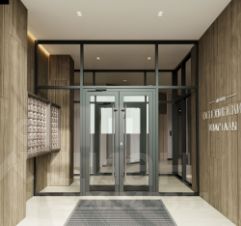 Входные группы прозрачные и расположены на уровне тротуара, чтобы было удобно завозить коляску или велосипед. Дизайн холлов выполнен в классическом выдержанном стиле. Для удобства жителей здесь есть мягкие зоны, колясочная и лапомойка, для автолюбителей - подземный паркинг.