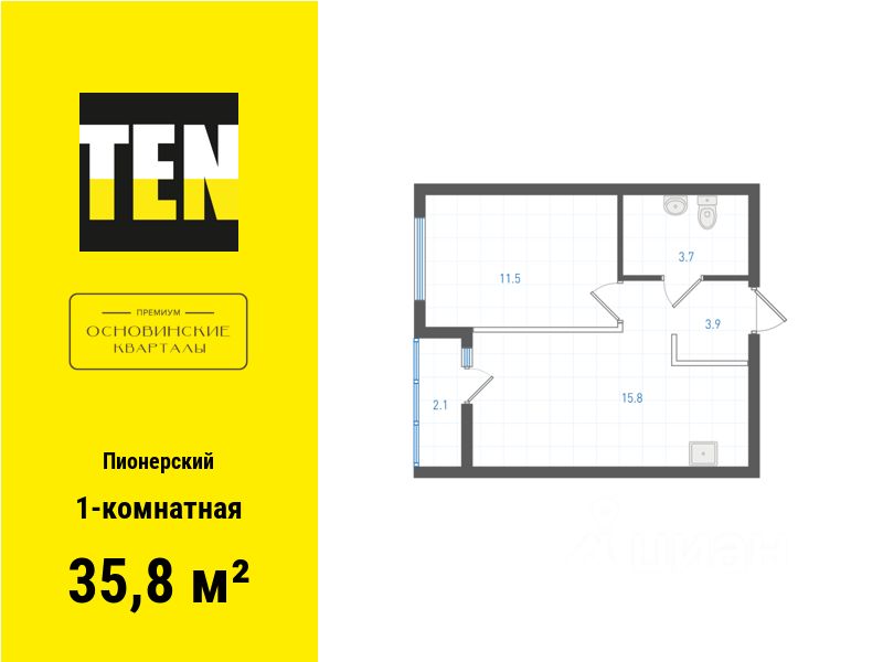 Квартира в ЖК "ОК: Премиум" в Пионерском микрорайоне от застройщика TEN девелопмент! Ключи во 2 квартале 2027 года.