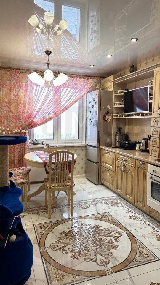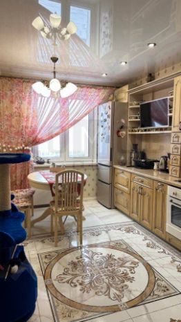 В квартире сделан хороший качественный ремонт - на полу ламинат, в кухне и в коридоре положили керамогранит и сделали тёплый пол под ним, обновили обои, заменили окна на лоджии (вместо алюминиевых рам поставили двухкамерный стеклопакет). Очень удачная планировка - широкий коридор, просторная кухня 11 кв.м., изолированные комнаты.