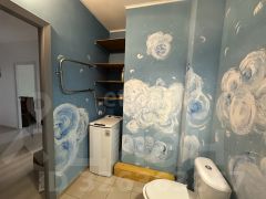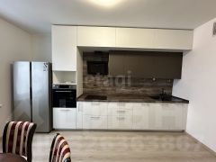 В квартире ремонт от застройщика, на полу ламинат, окна пластиковые. На кухне установлен кухонный гарнитур со всей необходимой встроенной техникой, качественный деревянный обеденный стол со стульями. В спальне двуспальная кровать и полки ручной работы из массива дерева. Есть два больших встроенных шкафа для хранения. Санузел совмещенный 4,6 м2, пол в плитке, на стенах водоэмульсионная краска, есть ниша для хранения бытовой химии. Мебель и техника остаются при продаже новому собственнику.