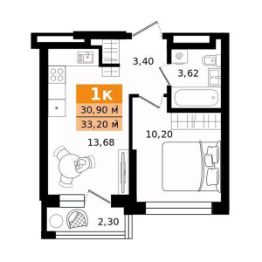 Общая площадь33,2 м²