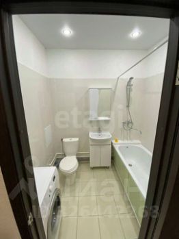 В квартире светлый ламинат, обои под покраску, современные межкомнатные двери, матовый натяжной потолок, санузел в керамической плитке, новые унитаз, раковина с тумбой со смесителем, выполнена шумоизоляция ванны, стиральная машина, полотенцесушитель.