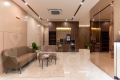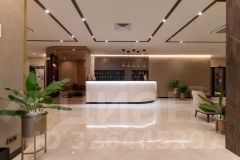 Общественные пространства дома выполнены по авторскому дизайн-проекту. Просторные холлы, наполненные светом, сочетание крупноформатного керамогранита, эксклюзивных элементов интерьера и декоративной подсветки создают ощущение роскоши, подобно лобби пятизвездочного отеля.