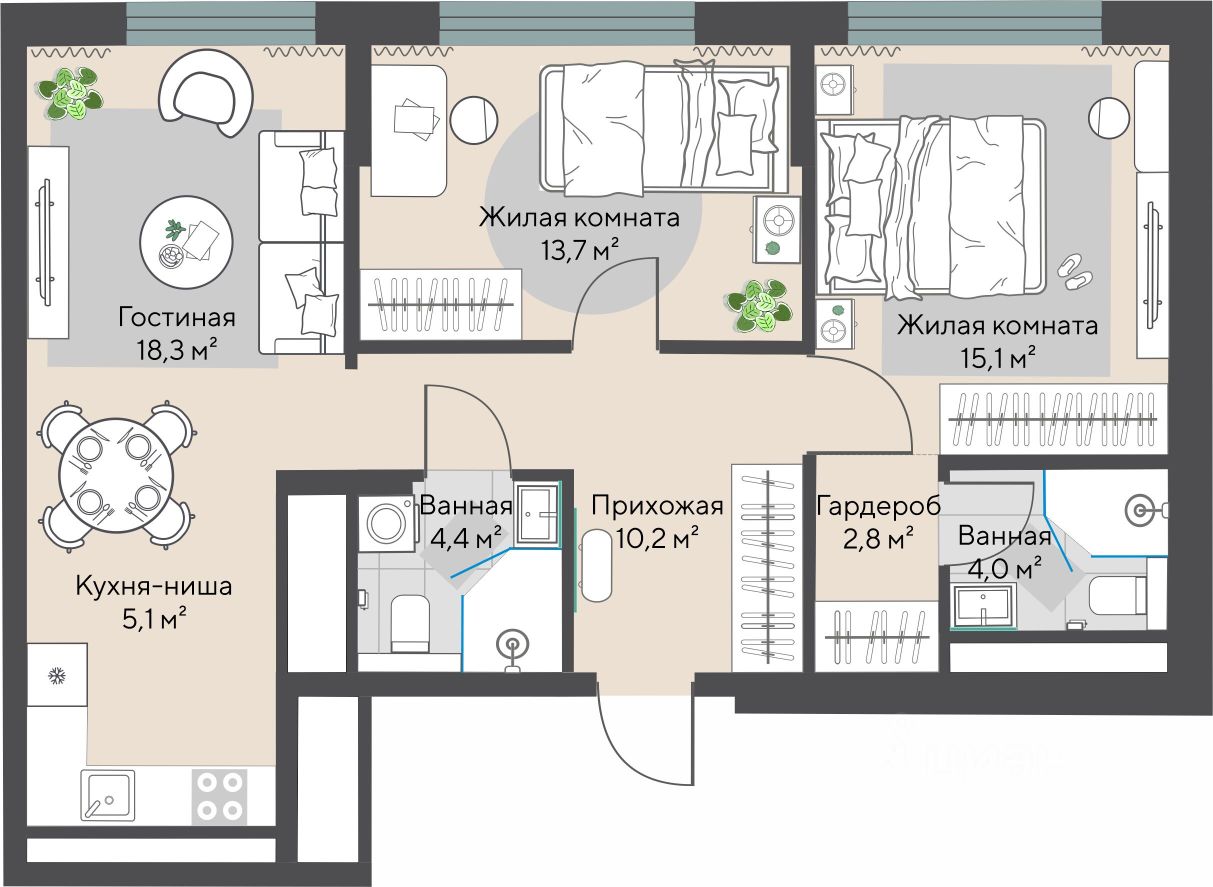 Жилои квартал "Никольскии" — проект, созданный для комфортной жизни и счастливых событий. Это жизнь бизнес-класса в центральном районе Екатеринбурга. ЖК "Никольский" расположен в центре города на пересечении улиц Фурманова — Белинского — Большакова и набережной реки Исеть. В 5 минутах пешей прогулки расположен центральный парк культуры и отдыха им. В.В. Маяковского Общественные пространства дома выполнены по авторскому дизайн-проекту. Просторные холлы, наполненные светом, сочетание крупноформатного керамогранита, эксклюзивных элементов интерьера и декоративной подсветки создают ощущение роскоши, подобно лобби пятизвездочного отеля. Для комфортной и счастливой жизни резидентов реализованы премиальные инженерные решения и функциональная внутренняя инфраструктура: теплый подземный паркинг, комнаты для хранения колясок и велосипедов с отдельным входом, душ для домашних питомцев и локеры для хранения сезонных и габаритных вещей. На первых этажах дома будут расположены фитнес-клуб с бассейном и детским фитнесом, медицинский центр "УГМК-Здоровье" и аптека, салон красоты, супермаркеты и магазины, пункты выдачи маркетплейсов, пекарня и пиццерия, винотеки. В шаговой доступности: детский сад 463 и школа 17 с углублённым изучением отдельных предметов. Всегда можно прогуляться на свежем воздухе — по соседству находятся центральный парк культуры и отдыха им. В.В. Маяковского и парк им. Павлика Морозова. На шоппинг и за развлечениями Вас ждут в торгово-развлекательном центре "Гринвич". Здесь же расположены цирк, дендропарк, ледовая арена "УГМК-Арена", спортивный комплекс "Юность", четыре высших учебных заведения, гостиницы, офисы ведущих компаний, а также здания районной, городской и областной администраций. Не является публичной офертой. Возможность провести бесплатную перепланировку от застройщика зависит от графика производства строительных работ. Необходимо уточнять возможность в центре продаж. Стоимость регистрации права собственности составляет: для физических лиц — 6 500 рублей, для юридических лиц — 56 000 рублей.