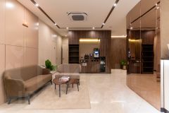 Общественные пространства дома выполнены по авторскому дизайн-проекту. Просторные холлы, наполненные светом, сочетание крупноформатного керамогранита, эксклюзивных элементов интерьера и декоративной подсветки создают ощущение роскоши, подобно лобби пятизвездочного отеля.