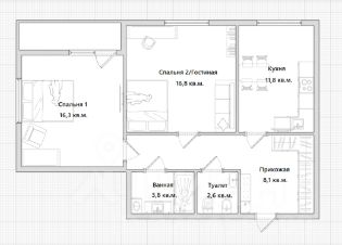 - Удобная планировка (кухня 11,8 кв.м.; две изолированные комнаты по 16 кв.м.; раздельный санузел; большая лоджия)