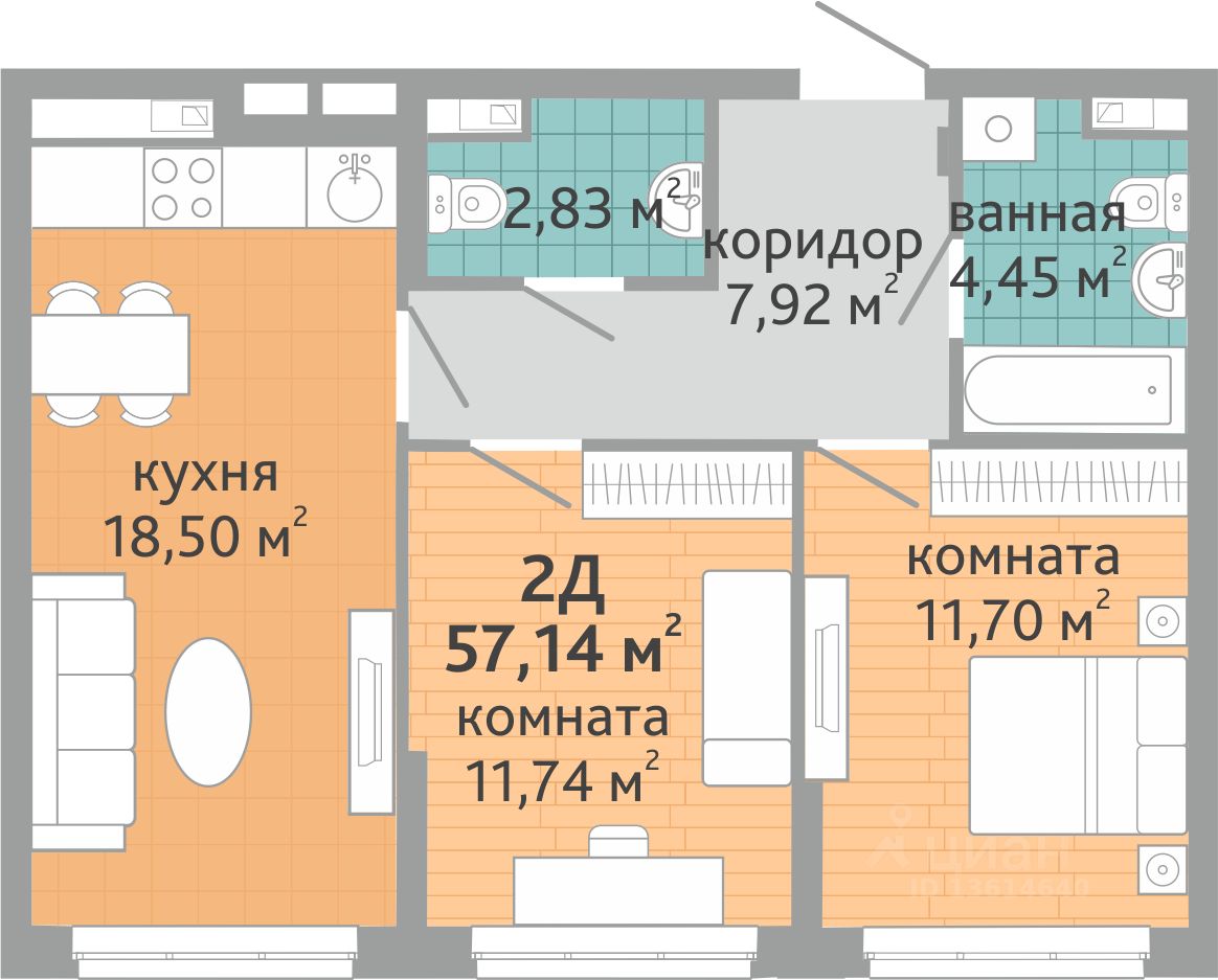 Продаётся 2-комнатная квартира в сданном доме (Коперника, 33), срок сдачи: III-кв. 2025, общей площадью 57.14 кв.м., на 2 этаже. Новый жилой дом от застройщика "СЗ Дельа-Групп" расположен по адресу: г. Екатеринбург, улица Викулова (дублёр).