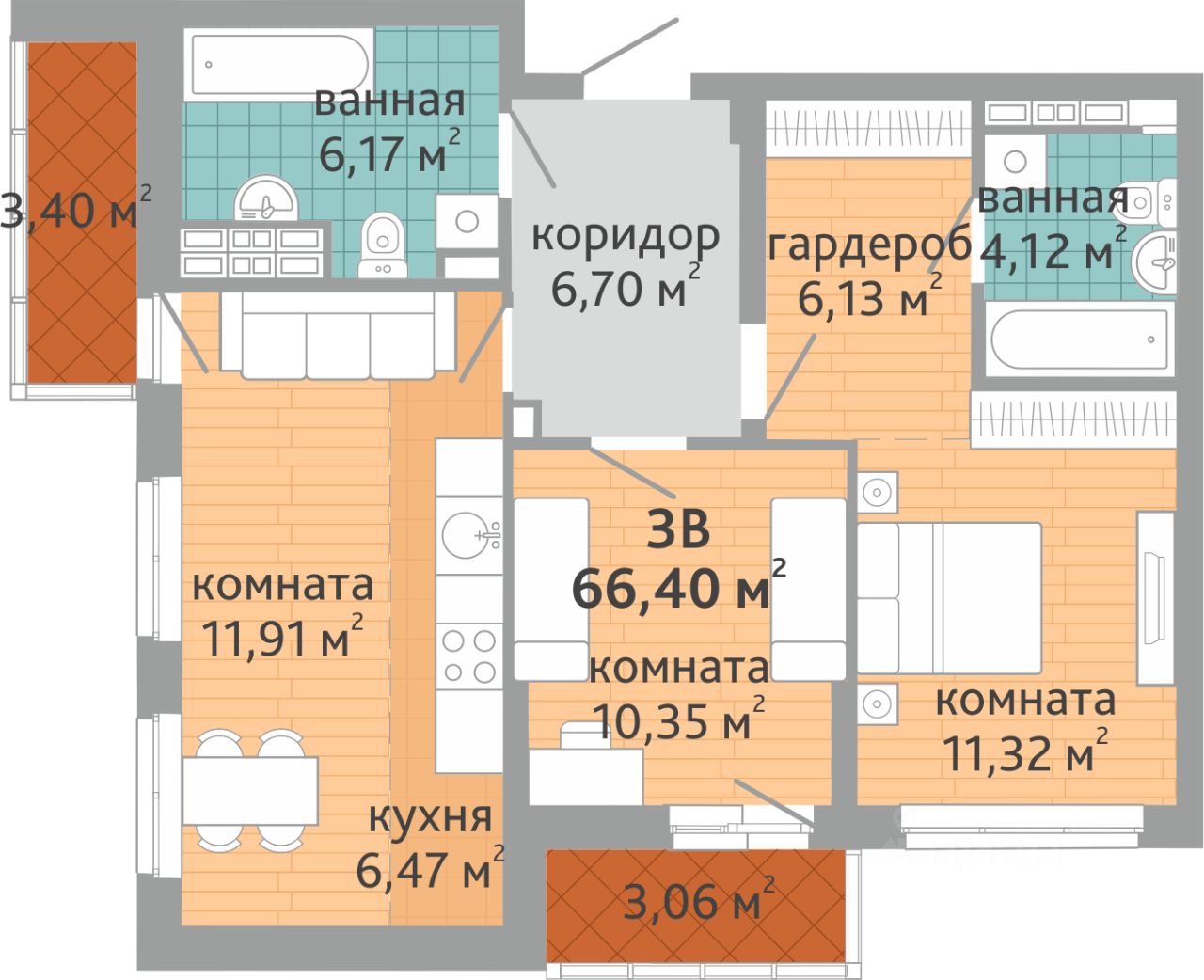 66,4 м²