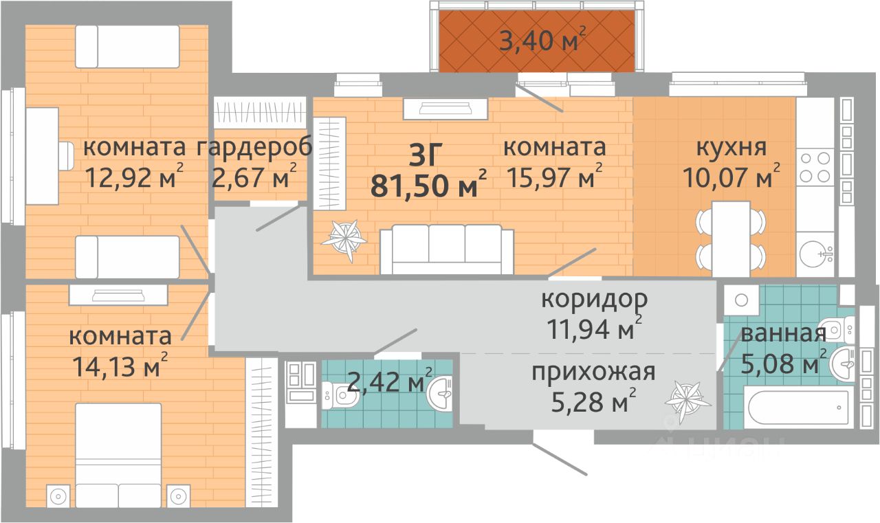 Продаётся 3-комнатная квартира в сданном доме (Коперника, 33), срок сдачи: III-кв. 2025, общей площадью 81.5 кв.м., на 12 этаже. Новый жилой дом от застройщика "СЗ Дельа-Групп" расположен по адресу: г. Екатеринбург, улица Викулова (дублёр).