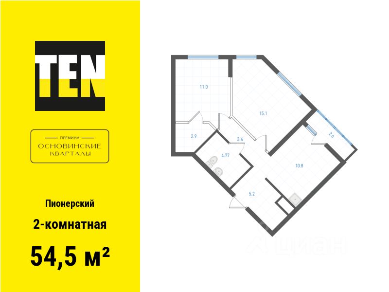 Квартира в ЖК "ОК: Премиум" в Пионерском микрорайоне от застройщика TEN девелопмент! Ключи во 2 квартале 2027 года.