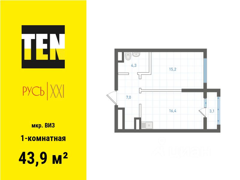 Общая площадь43,9 м²