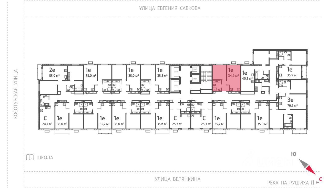Квартира располагается на 19 этаже 24-этажного дома в ЖК Меридиан.