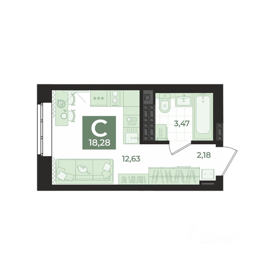 Общая площадь18,28 м²