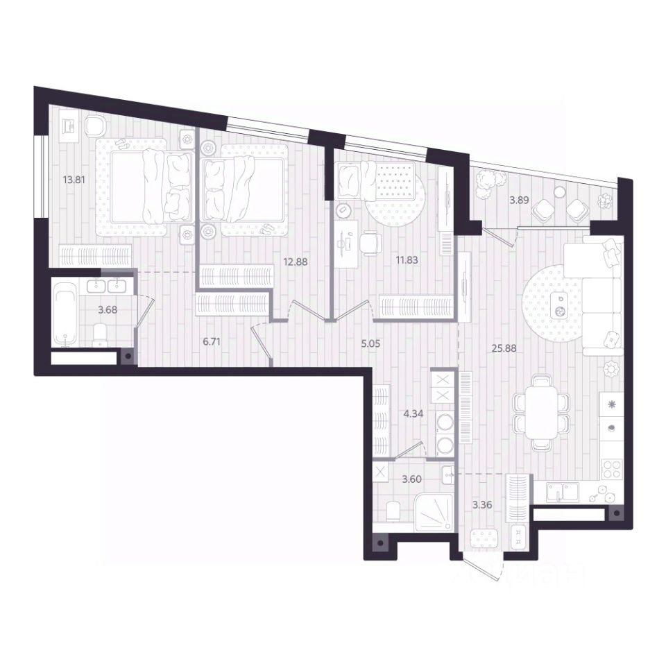 Продаётся 3-комнатная квартира в строящемся доме (Дом 1.1), срок сдачи: II-кв. 2028, общей площадью 93.11 кв.м., на 19 этаже. Новый жилой комплекс "Тетро" от застройщика "Люди" расположен по адресу: г. Екатеринбург, улица Героев России.