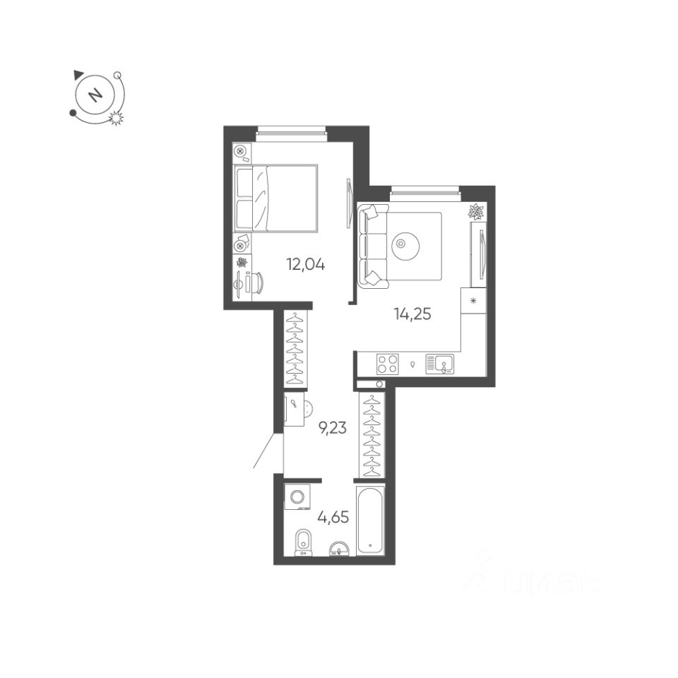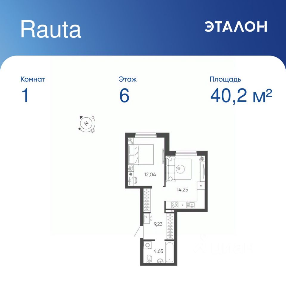 Общая площадь квартиры — 40.17 кв. м, этаж 6 из 24.