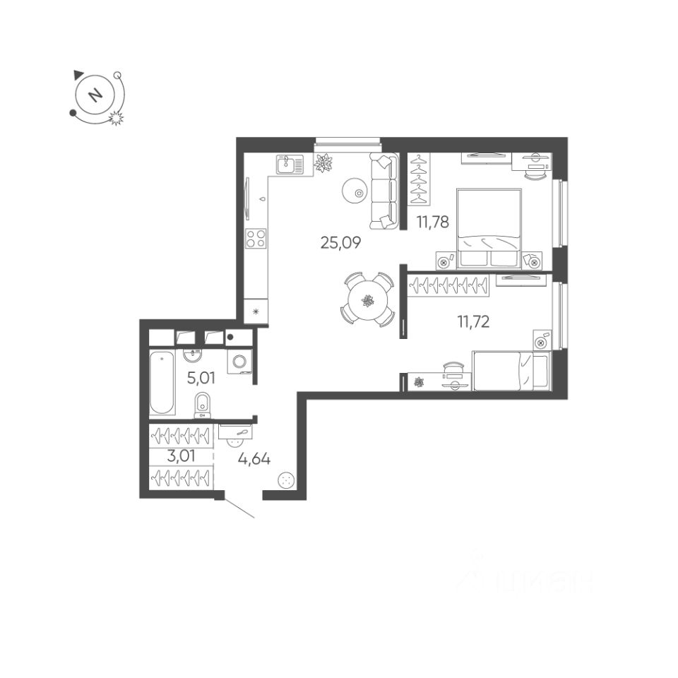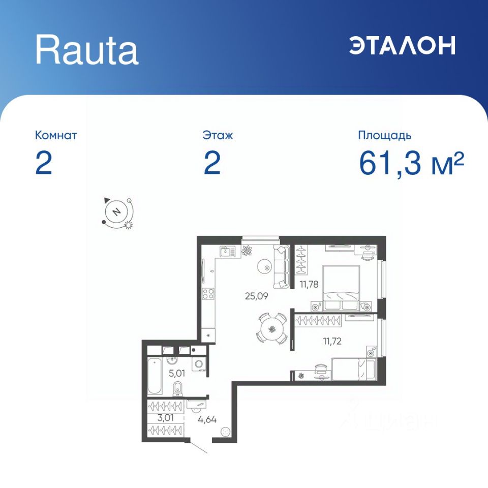 Общая площадь квартиры — 61.25 кв. м, этаж 2 из 24.