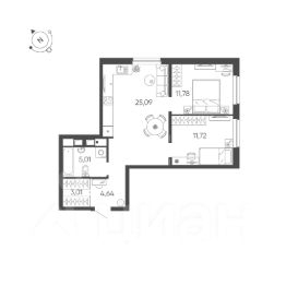 Общая площадь квартиры — 61.25 кв. м, этаж 12 из 24.