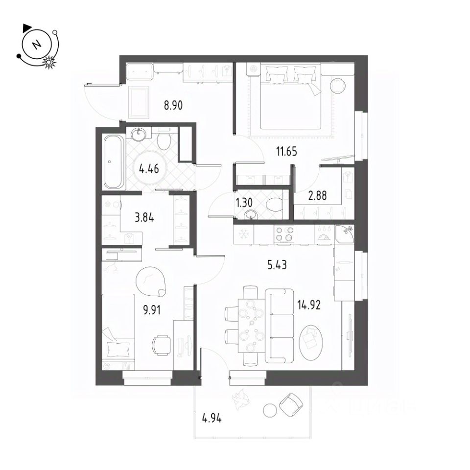 Продается 3-к квартира отделка White Box в ЖК "Rauta".