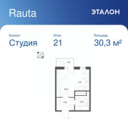 Общая площадь квартиры — 30.3 кв. м, этаж 21 из 25.
