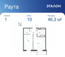 Общая площадь квартиры — 46.3 кв. м, этаж 10 из 25.