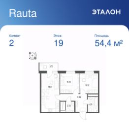Общая площадь квартиры — 54.4 кв. м, этаж 19 из 25.