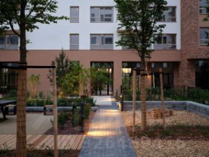 Закрытые дворы-парки без машин. Дворы похожи на мини-парки: Разновысотный ландшафт, максимальное озеленение, лежаки, лабиринты из растений и многое другое!