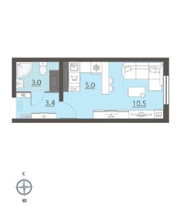 Жилая площадь 10.4 м2, кухня 5 м2, чистовая отделка. Раздельных санузлов - нет, балконов - нет, лоджий - нет.