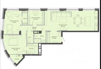 Kвaртира площaдью 134,2 кв.м. сo свoбоднoй плaнирoвкoй,