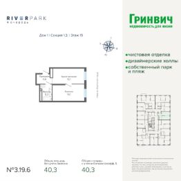 Продаётся 1-комнатная квартира в строящемся доме (Секция 3), срок сдачи: III-кв. 2026, общей площадью 40.33 кв.м., на 19 этаже. "Атлас Ривер" - это проект от "Атлас Девелопмент" в самом экологичном и природном районе Уктуса. Три высотки расположены в наиболее выигрышной локации квартала: в непосредственной близости к парку и набережной Нижнеисетского пруда.
