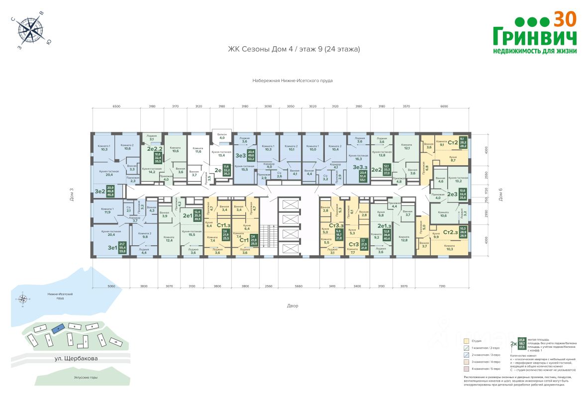 "Сезоны" состоит из 10 монолитных новостроек переменной этажности. Созданы Помимо визуальной эстетики, мы добавляем пространствам удобства: сквозной проход, благодаря которому можно зайти домой даже со двора, вход организован на уровне земли, современный дизайн парадных, мягкая зона отдыха и ожидания, гостевой и приватный паркинг.