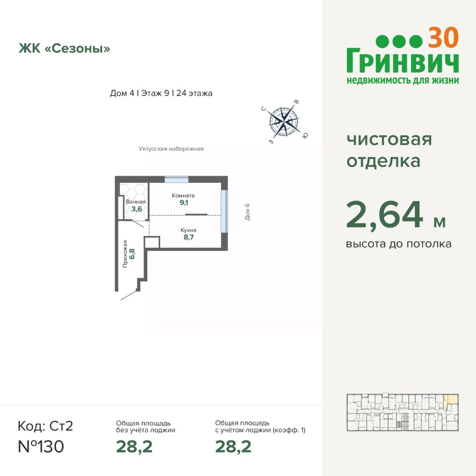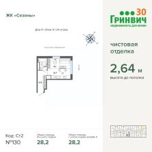 Продаётся студия в строящемся доме (Дом 4), срок сдачи: I-кв. 2026, общей площадью 28.19 кв.м., на 9 этаже. Квартира от застройщика