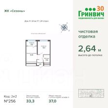 Продаётся 1-комнатная квартира в строящемся доме (Дом 4), срок сдачи: I-кв. 2026, общей площадью 36.97 кв.м., на 17 этаже. Квартира от застройщика