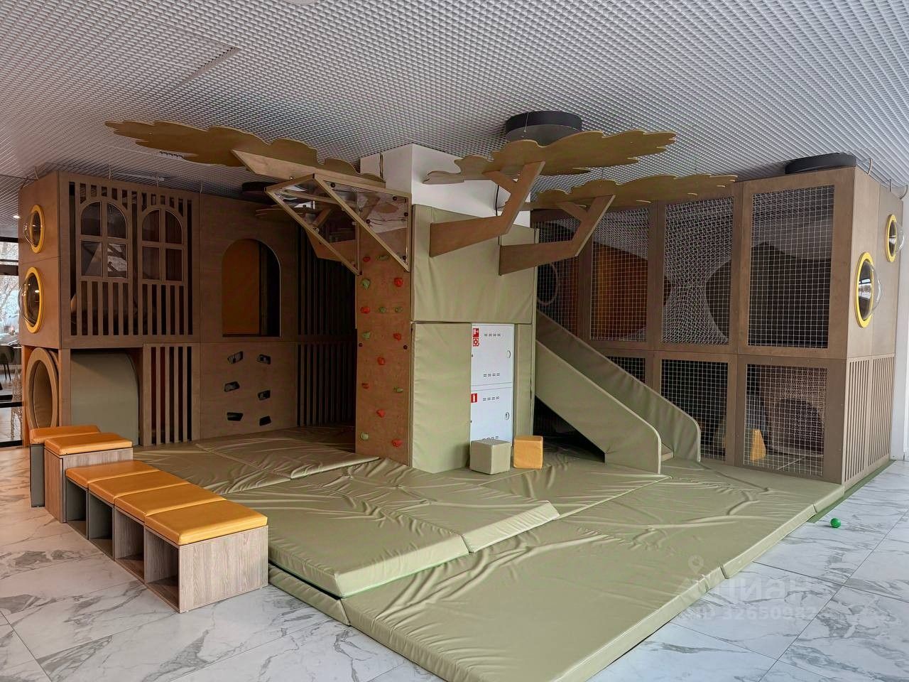 В зоне вестибюля есть помещения отдыха, где любой житель может поработать или отдохнуть вне стен своей квартиры. Также предусмотрены игровые зоны для детей разного возраста с видом на благоустроенный двор. Благодаря этому, дети могут проводить время в тепле зимой, а родители наблюдать за детьми отдыхая и общаясь.