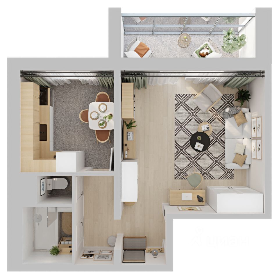 Площадь 38,67 м² свобода планировки под ваш стиль жизни