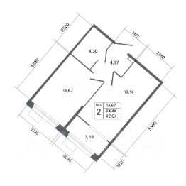 Общая площадь42,07 м²