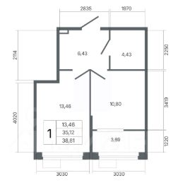 Общая площадь38,81 м²