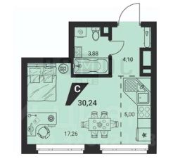 - общая площадь - 30,4 м2