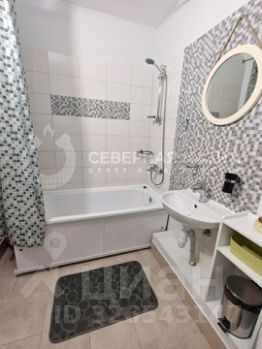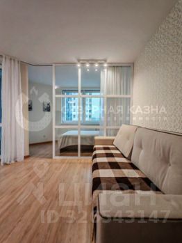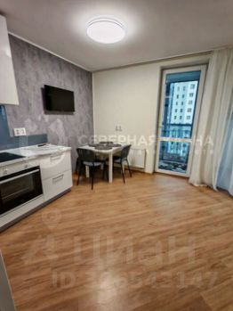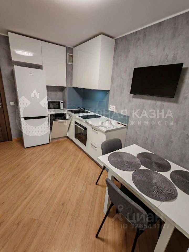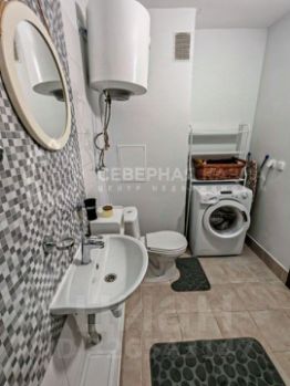 В кухне-гостиной установлена перегородка, благодаря которой можно обустроить спальную или рабочую зону. Эргономичный кухонный гарнитур со встроенным духовым шкафом, посудомоечной машиной и вытяжкой остается новым собственникам. Санузел оснащен водонагревателем на случай отключения ГВС