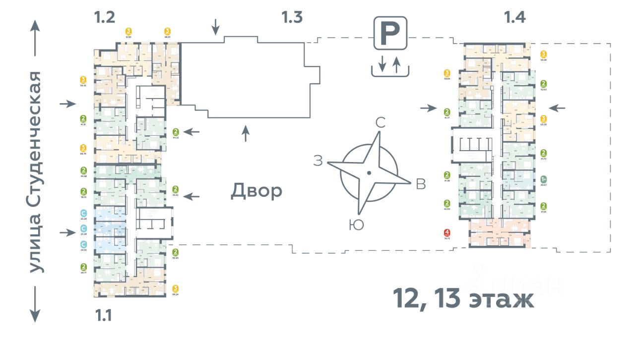 Предусмотрен подземный паркинг и кладовые. Срок сдачи 3 квартал 2026 г.
