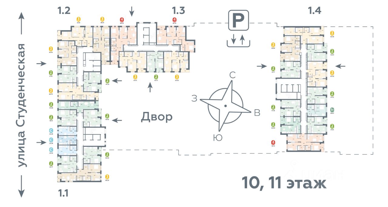 Предусмотрен подземный паркинг и кладовые. Срок сдачи 3 квартал 2026 г.