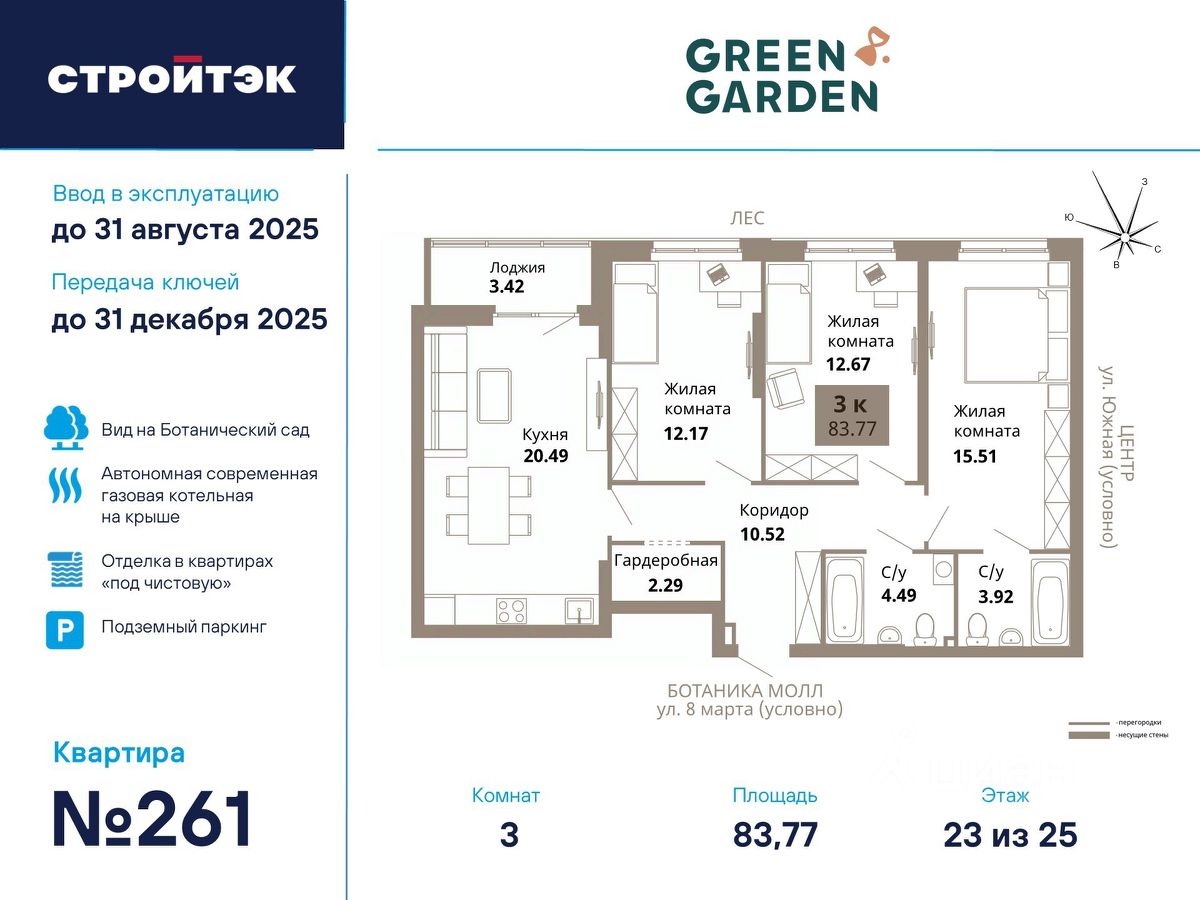Жилой комплекс Green Garden (Грин Гарден) расположен в микрорайоне Ботанический, в сердце Ботанического сада — по адресу 8 марта, 204е. Дом сдан. Продажа квартир осуществляется по договору купли-продажи от застройщика.