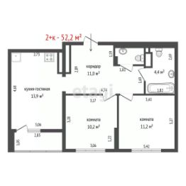 Общая площадь - 52,2м2 + лоджия.