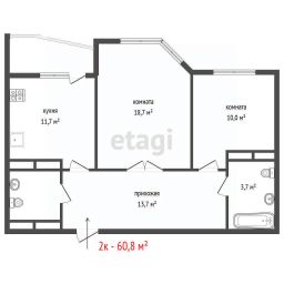 Удобная планировка с двумя изолированными комнатами (18,72 кв.м., 10,04кв.м.) и двумя сантехническими узлами. Кухня 11,78 кв.м. с балконом. Большой коридор площадью 13 кв.м. Установлены приборы учёта на тепло и воду.
